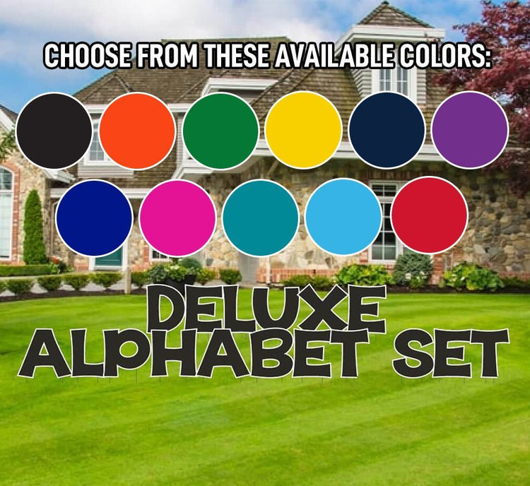 Our Deluxe Alphabet Sets have all the extra important letters you need for multiple yard greeting set-ups in one day!