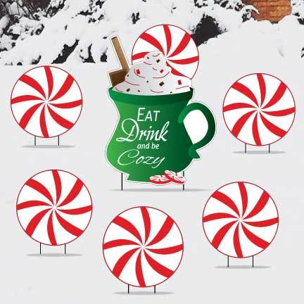 Eat Drink and Be Cozy Hot Chocolate Yard Decorations 7 piece set