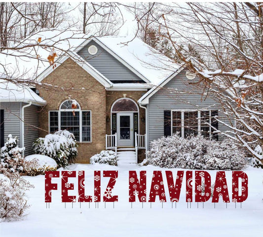 Red Snowflake Feliz Navidad Yard Sign letter Set - 12 pieces