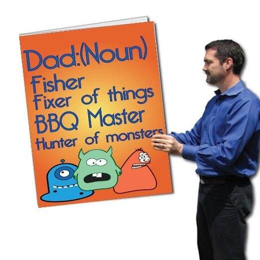 You are sure to find the perfect gift for the special Dad in your life with our Giant Father's Day Greeting Cards.  Personalize your card or choose from our pre-designed stock products. Our jumbo greeting cards are made of high quality, durable corrugated plastic, and come in sizes up to 4 feet tall!