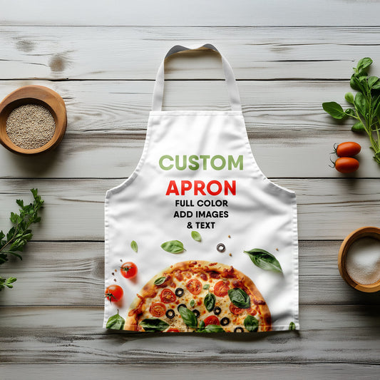 Custom All-Over Print Apron – Design Your Own Full Color Bib Apron for Cooking, Grilling & Restaurant Use – Eco-Friendly Heavyweight Polyester – 29" Long – Adjustable Tie – No Pockets