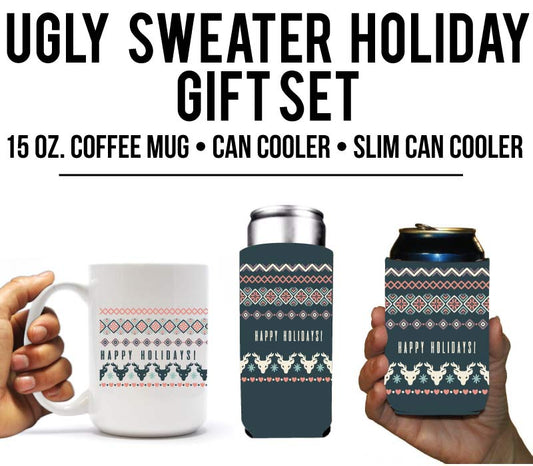 Happy Holidays Christmas Sweater Mug & Can Cooler Gift Set