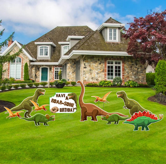Roar-some Dinosaur Birthday Themed Yard Decoration - 10 pc set