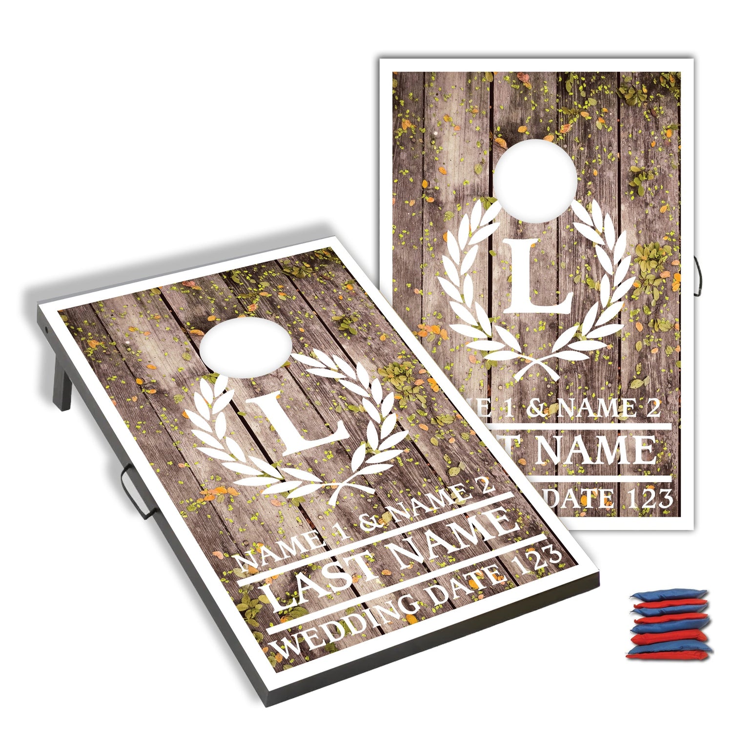 Custom Laurel and Initial Wedding Cornhole Bag Toss Game