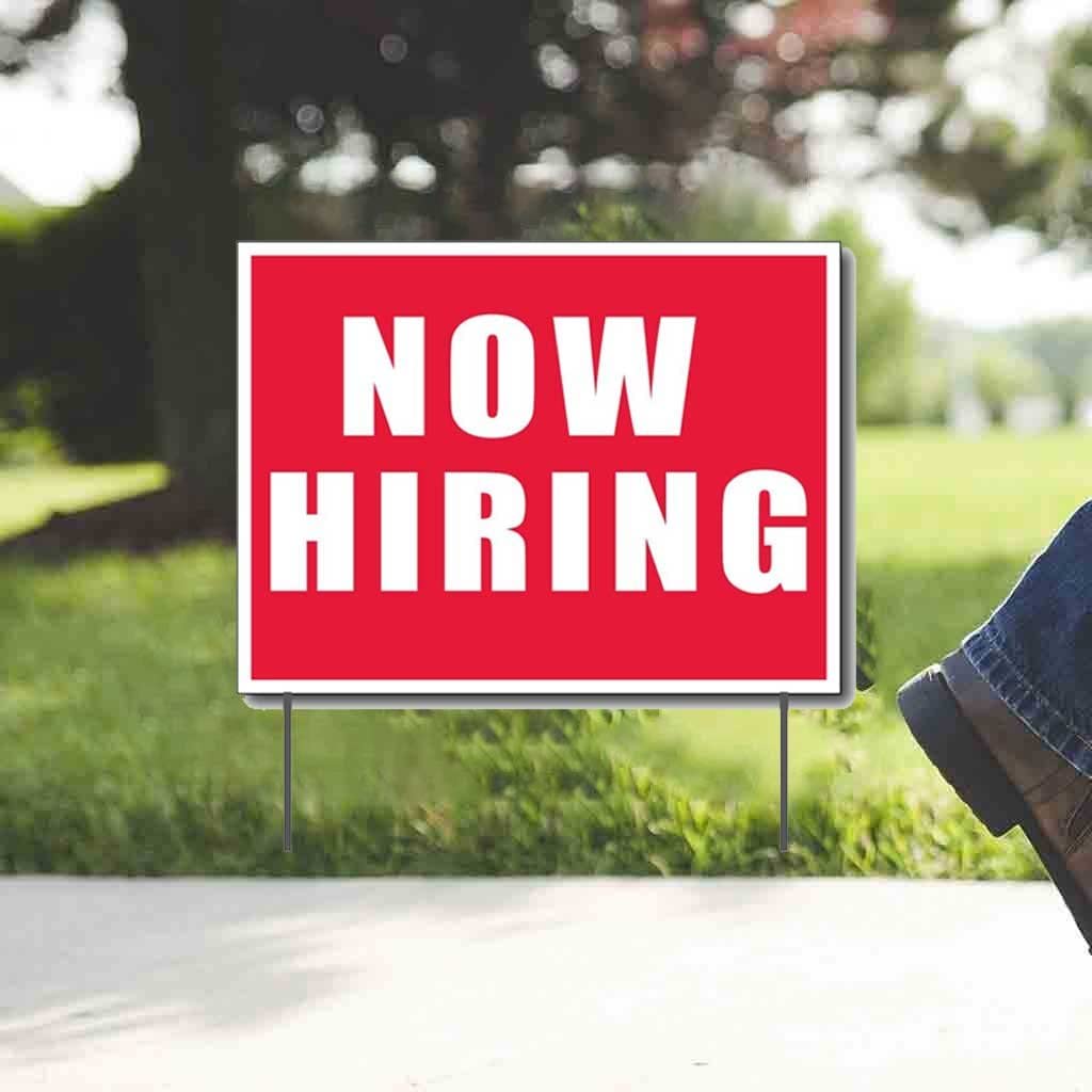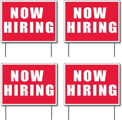 - This set comes complete with 4 signs that say “Now Hiring” that measure 18”x 24”.