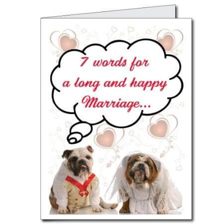 • The front text reads:... " 7 words for a long and happy Marriage... "