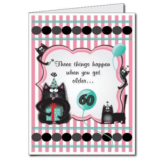 3' Giant Forgetful Cats 60th Birthday Greeting Card
