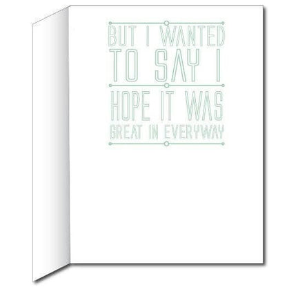 • The inside of the card reads "But I wanted to say I hope it was great in everyway".