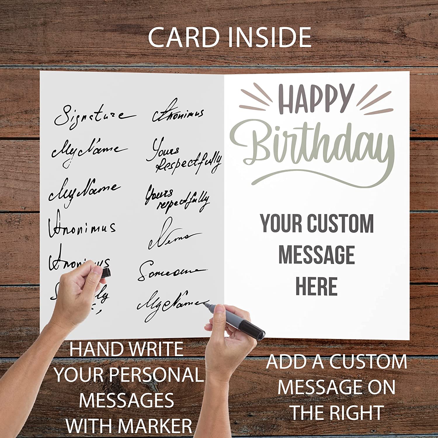This jumbo card allows you to write a long handwritten note on the inside of the card. *Markers work best*