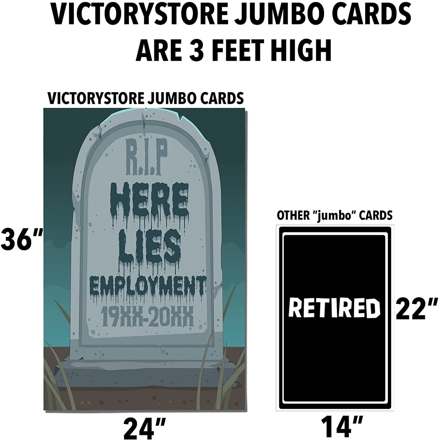 - Humors Retirement Card: Our jumbo card measures 2 feet by 3 feet folded and ships in a jumbo envelope.
