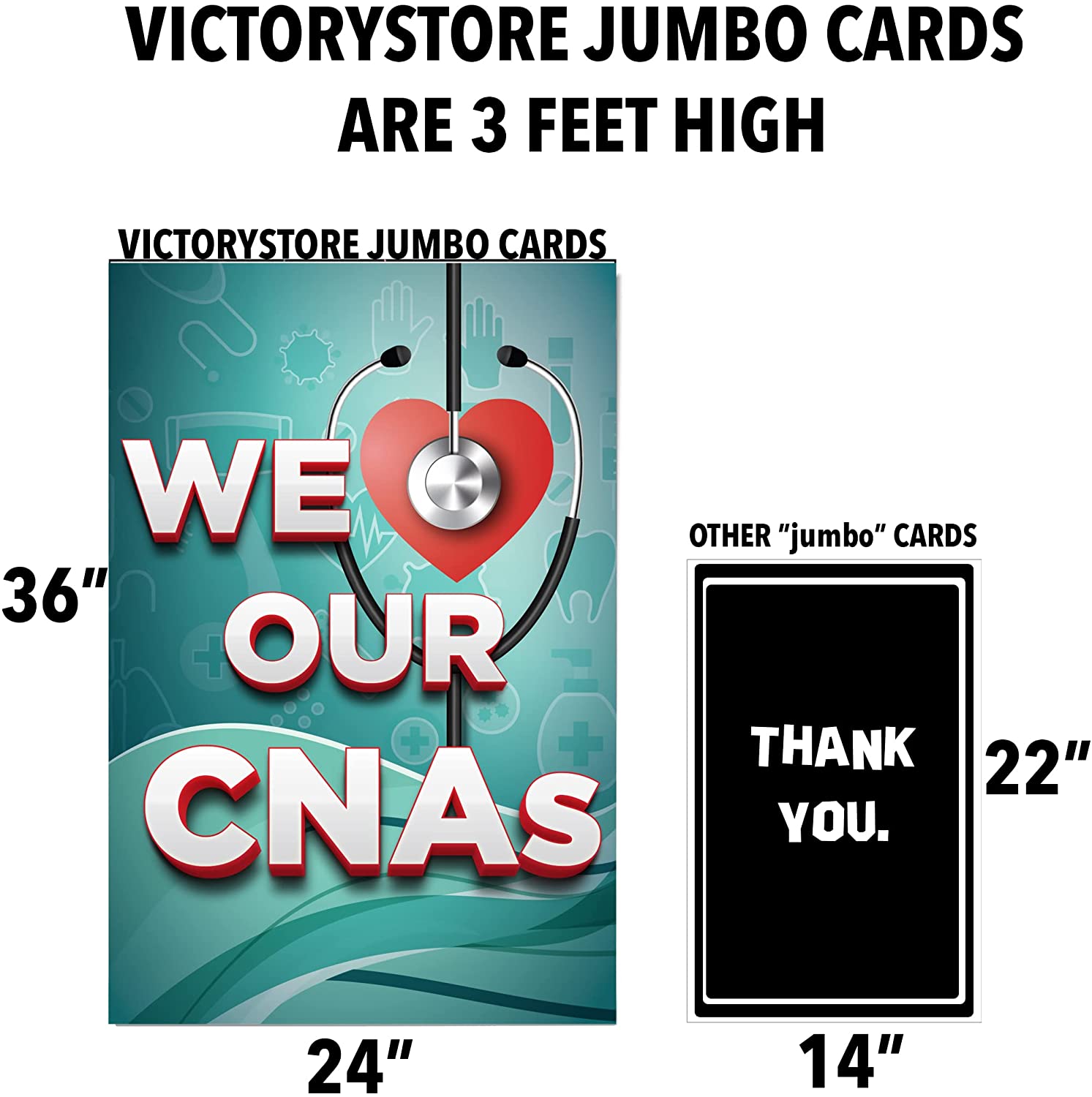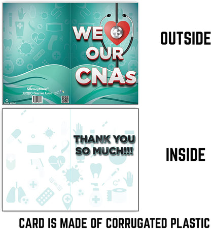 - Show your appreciation for your CNAs with a Jumbo Greeting Card. This card measures 2 feet by 3 feet. The inside of the card leaves plenty of room for handwritten notes and signatures.
