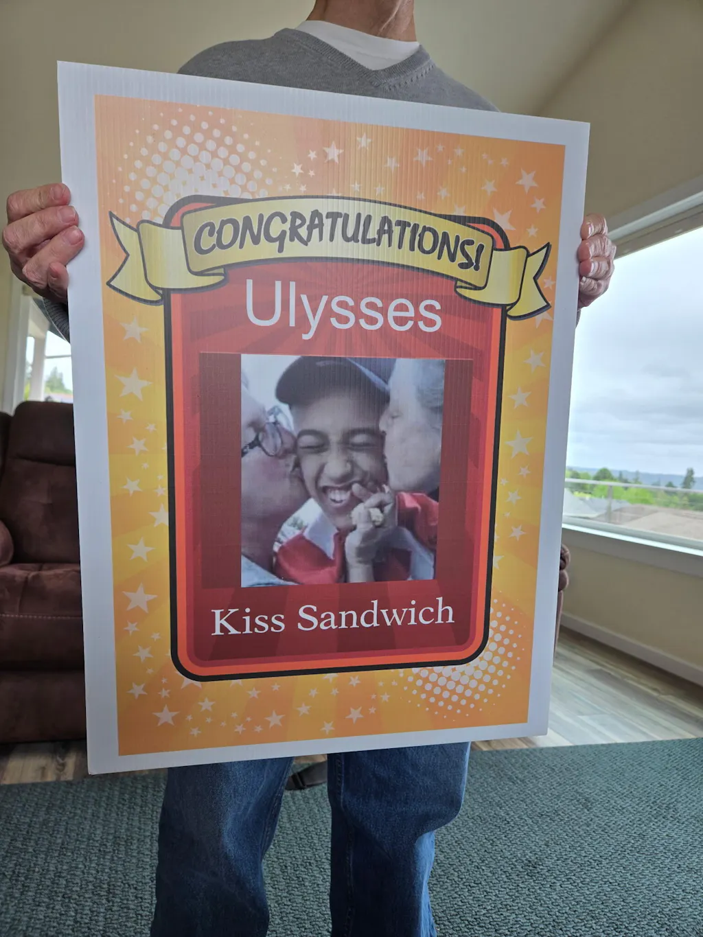 Surprise your loved one with a huge one-of-a-kind greeting card featuring your custom text on the inside
