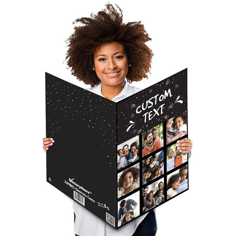 Surprise your loved one with a huge one-of-a-kind greeting card featuring your custom text on the inside