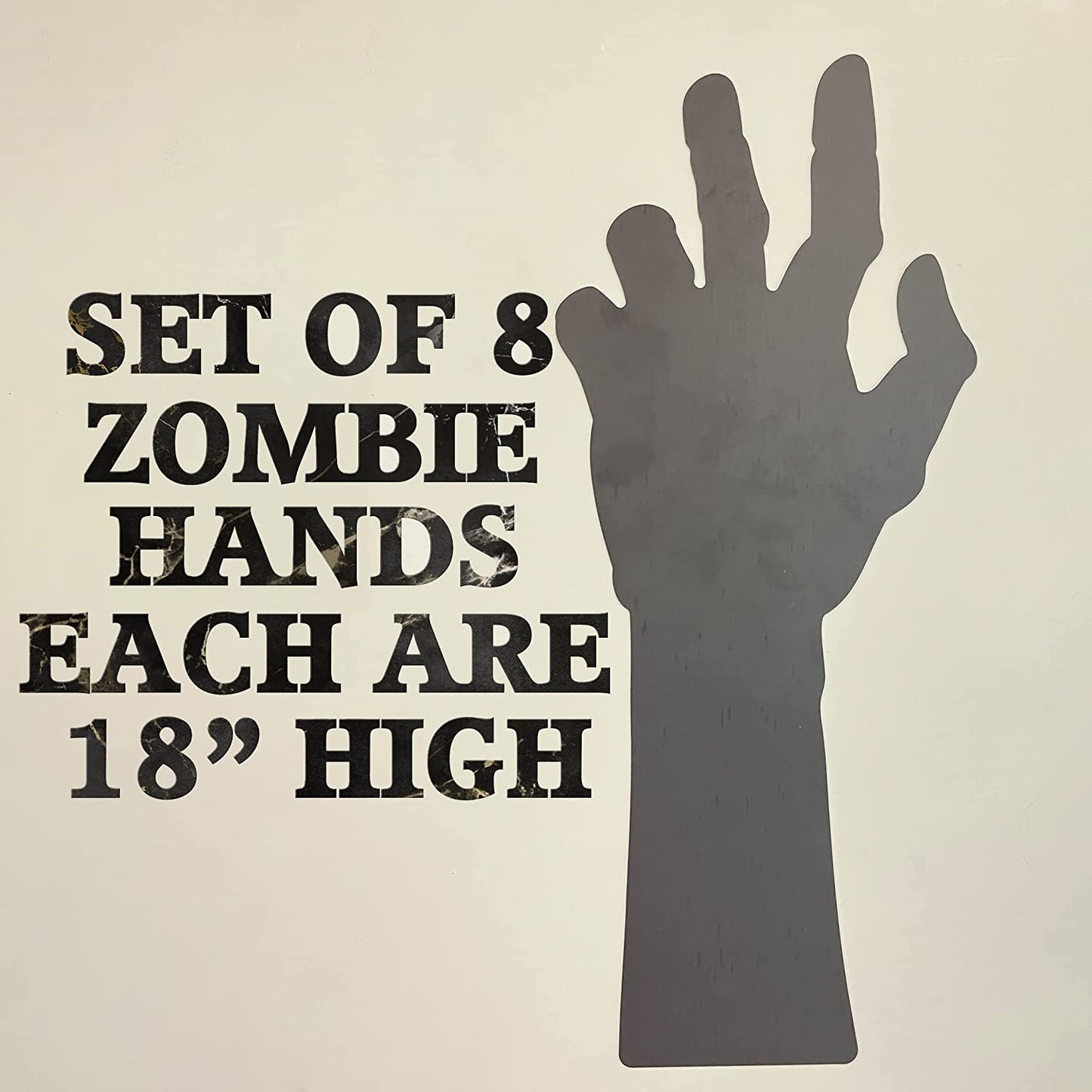 - MAGNETIC ZOMBIE HANDS- This set includes 8 zombie hands, each measuring 18 inches high.