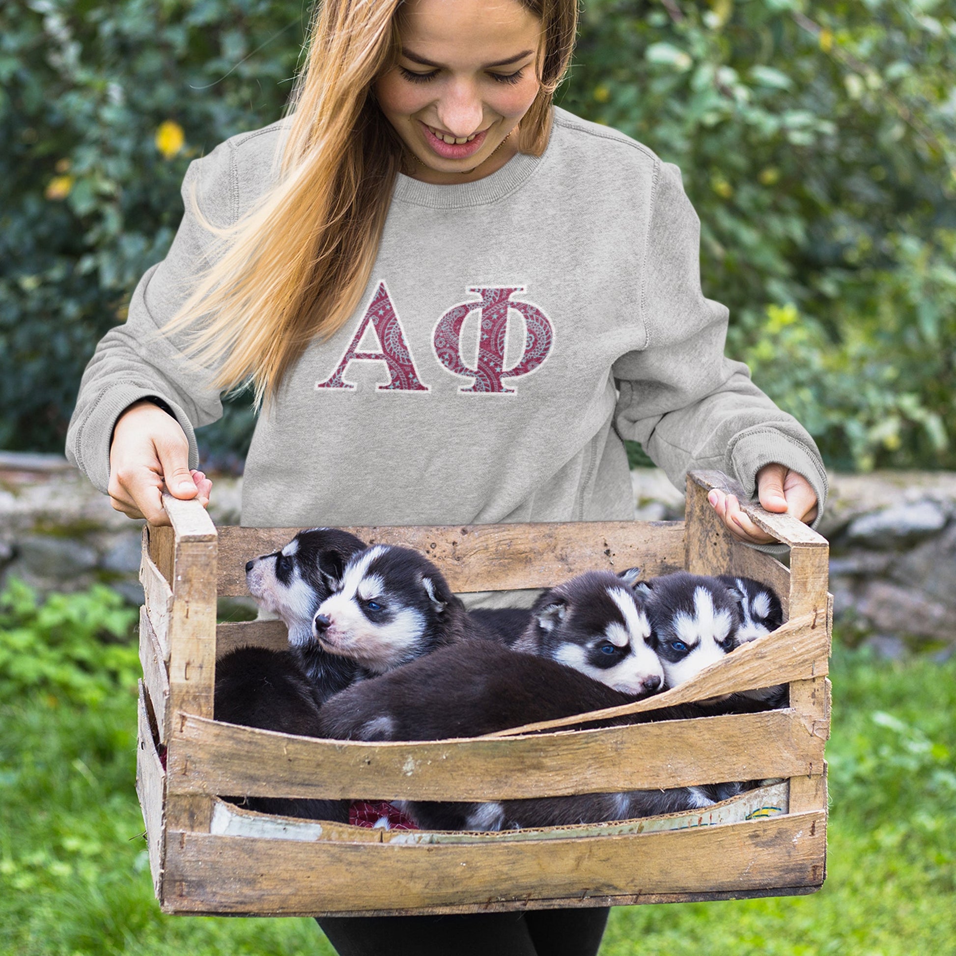 Show your support for Alpha Phi with this crewneck sweatshirt.