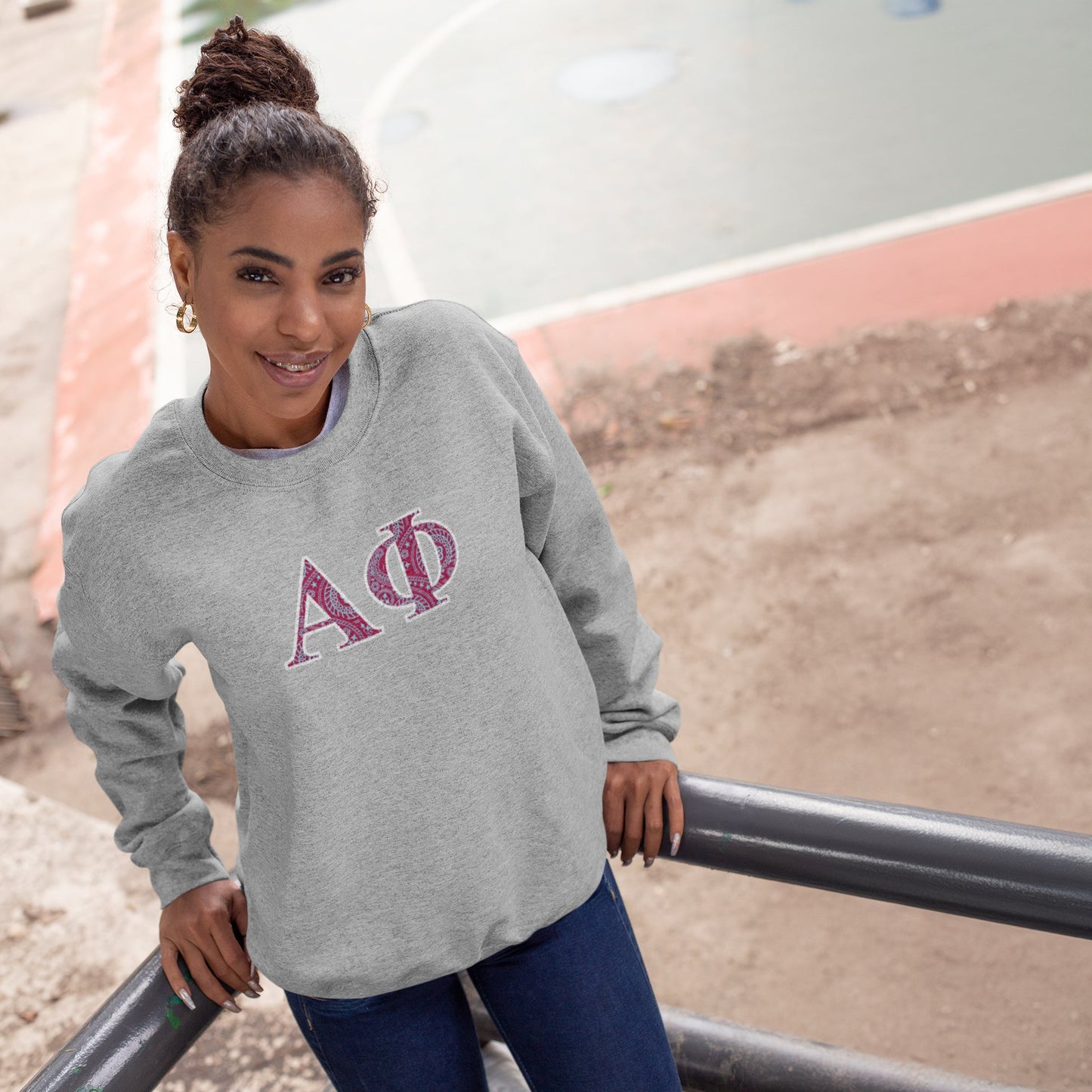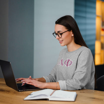 Alpha Phi Greek Letter Sport Gray Crewneck Sweatshirt