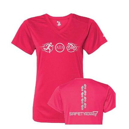 Alpha Xi Delta Run Bike Reflective Pink V-neck SafetyRunner Shirt