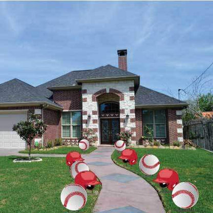 - YARD SIGN OUTDOOR LAWN DECORATION: Our Baseballs and Helmets Yard Decorations and Pathway Markers are perfect to celebrate a birthday party, playoffs, or winning the big game with family and friends. Party supplies for those baseball celebrations include Jumbo cards and outdoor decorations which will make a memorable celebration.