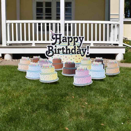 Happy Birthday Yard Greetings with Birthday Cakes 13 pc set