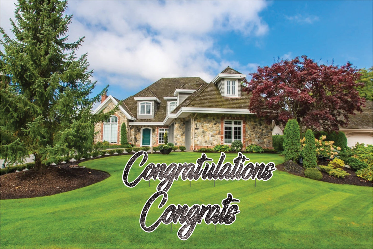 - Congratulations comes in 2 signs: 17.5"x36" and 11.5"x30"