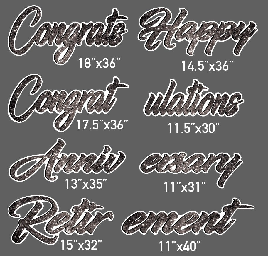 - Happy measures 14.5"x36" and Congrats measures 18"x36"