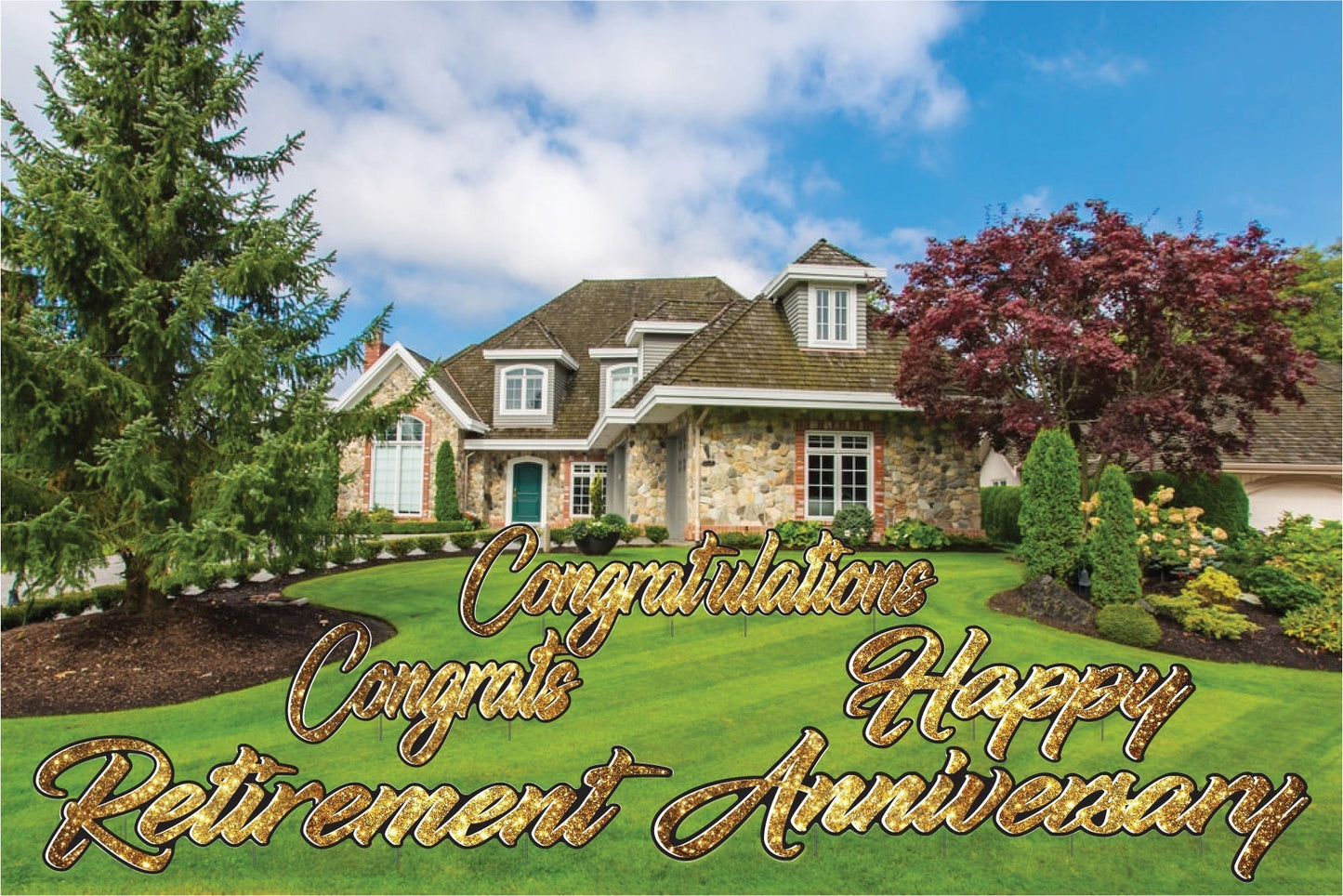 Set up quickly with our Celebration EZ Yard Cards for Graduations, Retirements and Anniversaries