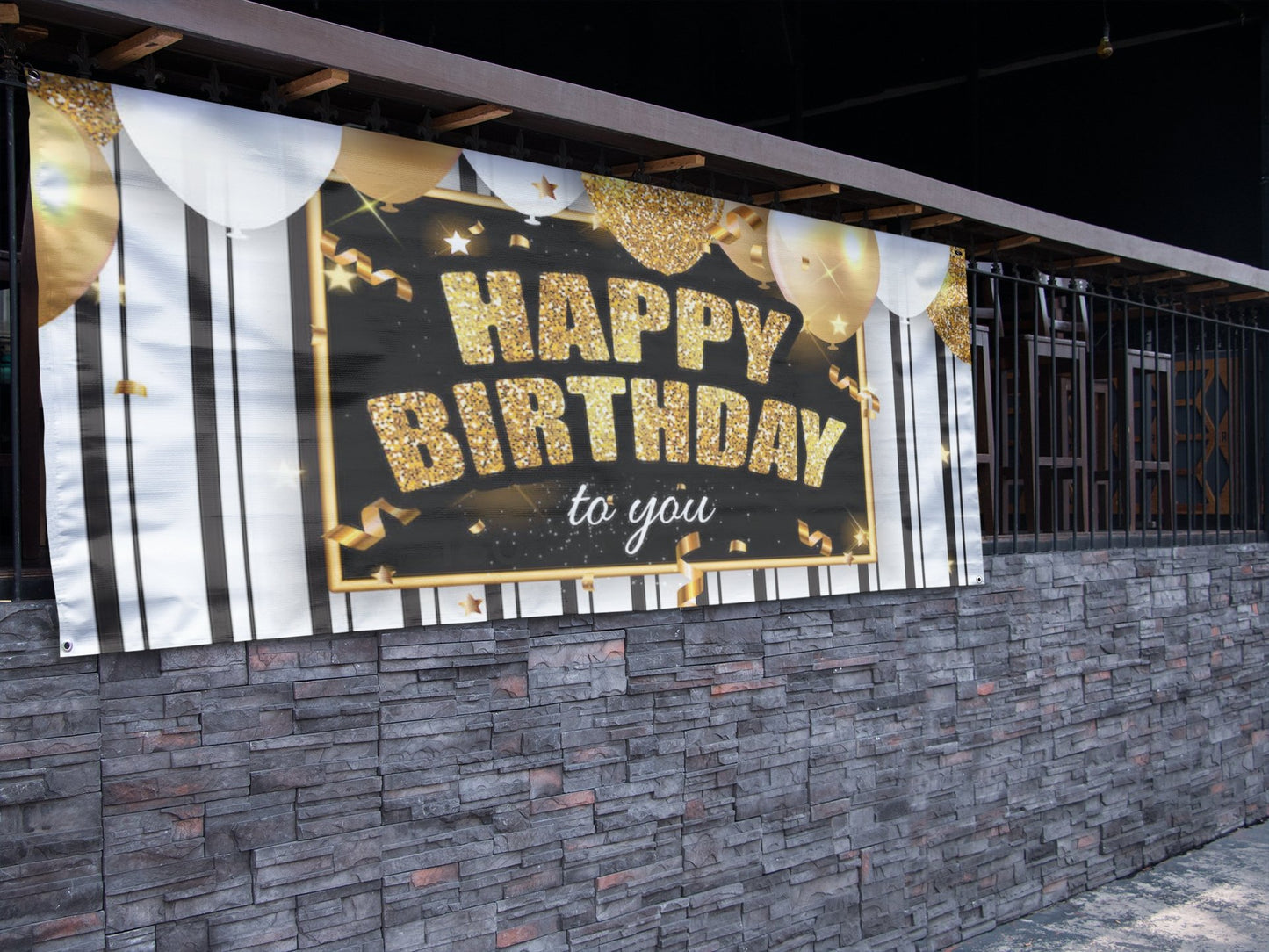 - Check out our great custom Black & White Striped Birthday banner to use in your house, a bar or a restaurant. Waterproof surface and will last longer without the printing becoming faded.
