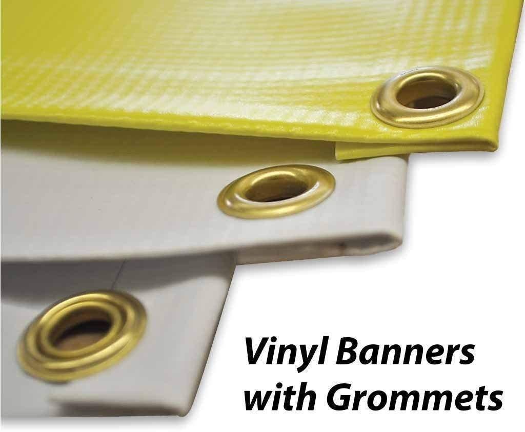 - The outdoor vinyl banner measures 2' tall by 4' wide, 3' tall by 6' wide, and 4' tall by 8' wide.