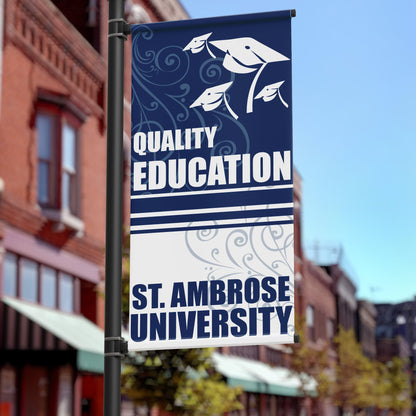 • All banners include 3" hemmed pole pockets and grommets (metal holes for securing banner) on the upper and lower left corners.