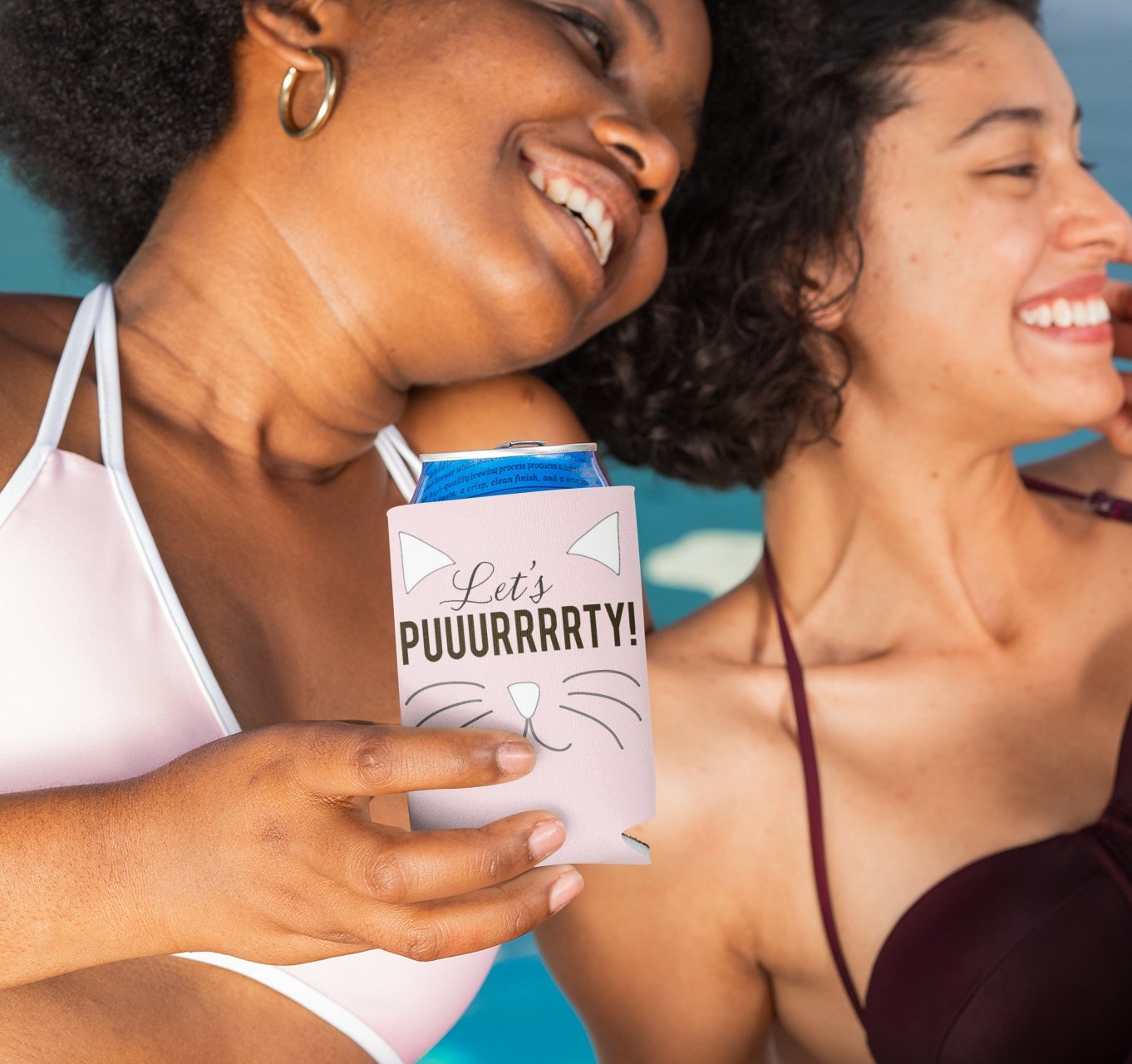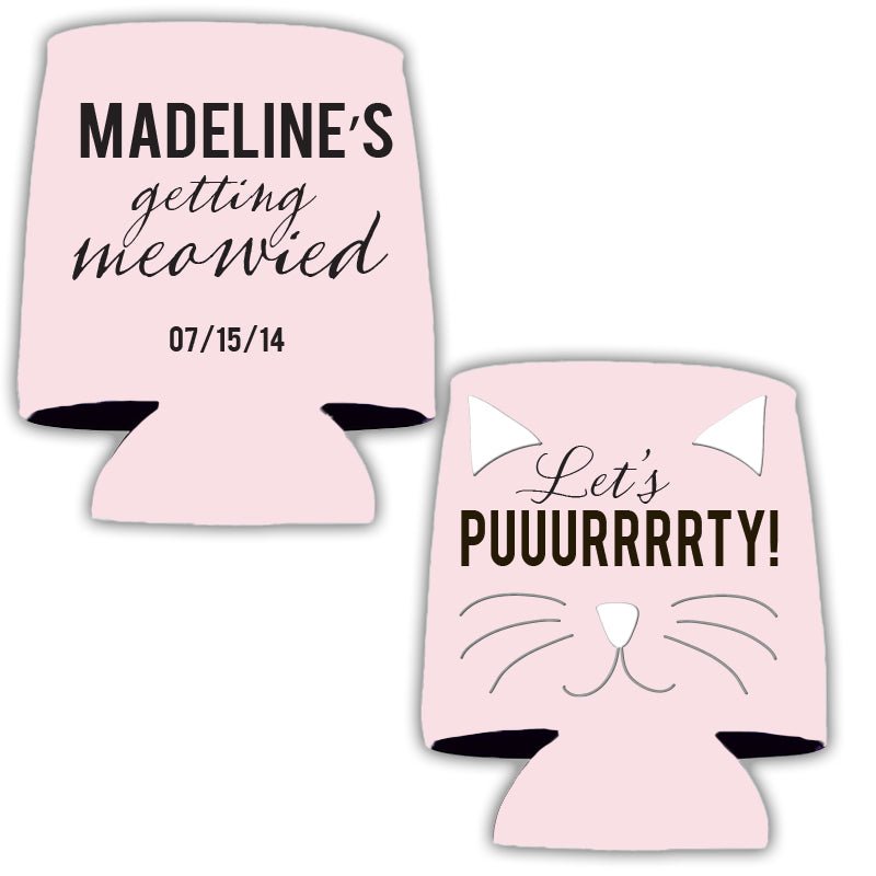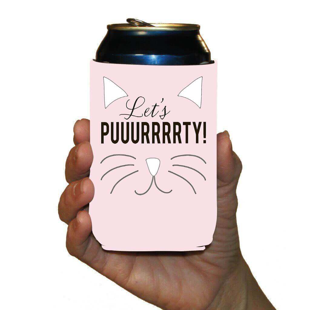 Let's Purrrty Cat Bachelorette Party Custom Can Cooler Set