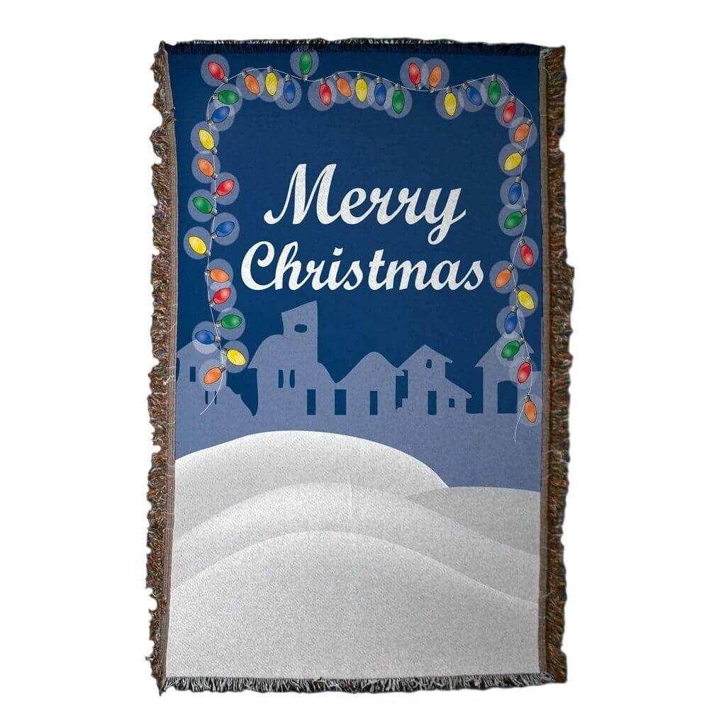 - This beautiful woven blanket comes with a Christmas Lights design on one side and brown woven fabric on the other.