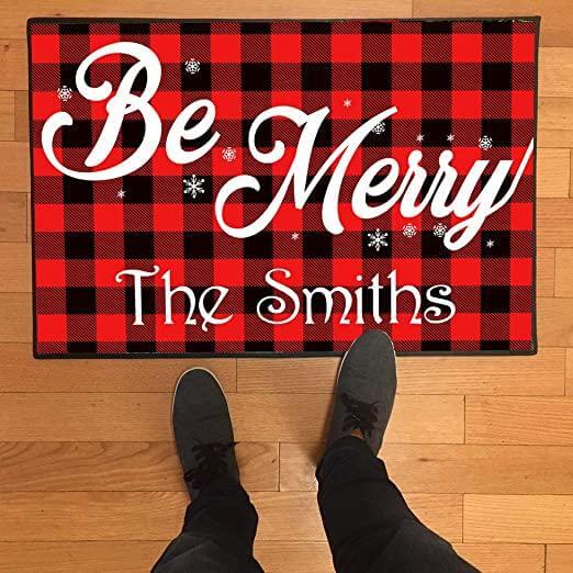 Personalized 'Be Merry' Christmas Door Mat