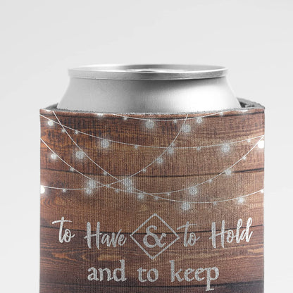 Custom Wood To Have and To Hold Wedding Can Coozies