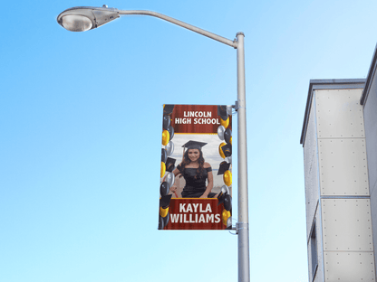Celebrate the Graduates with our Street Pole Banners! Throw a graduation party they'll never forget. Show your hometown pride and celebrate your graduates with a custom, long-lasting street pole banner.