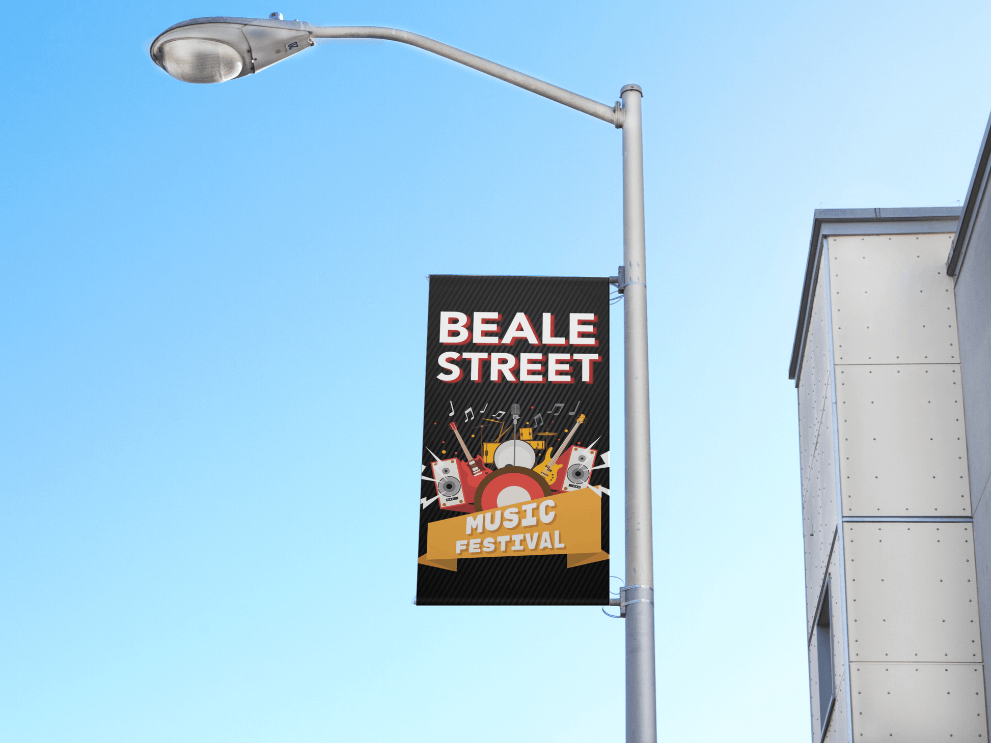 Celebrate your city's Music Festival with our Street Pole Banners! Make your mark and stand out with our custom Street Pole Banners! Show your support and pride in a fun, unique way.