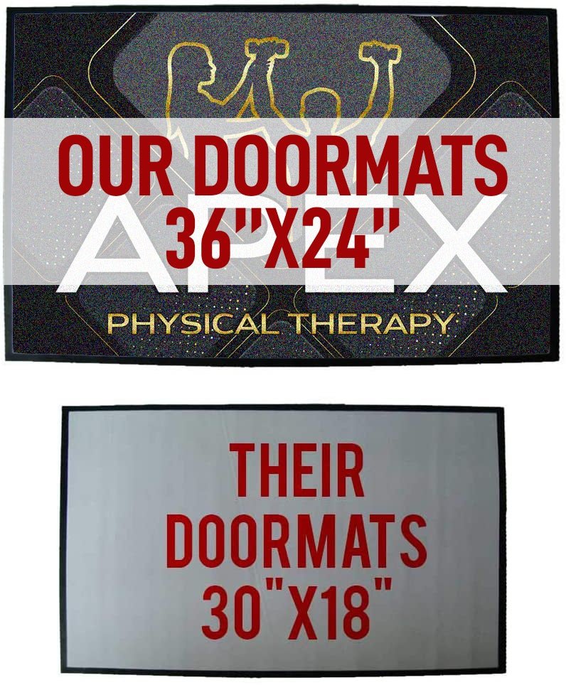 - Jumbo doormat, this PT doormat measures 24x36 inches, to fit your doorway.