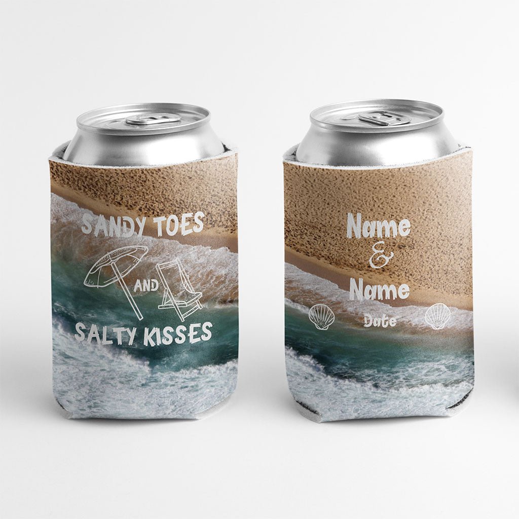 Personalized Sandy Toes And Salty Kisses Wedding Can Cooler