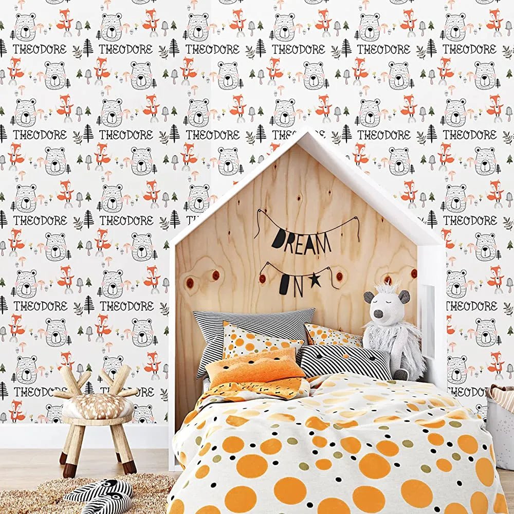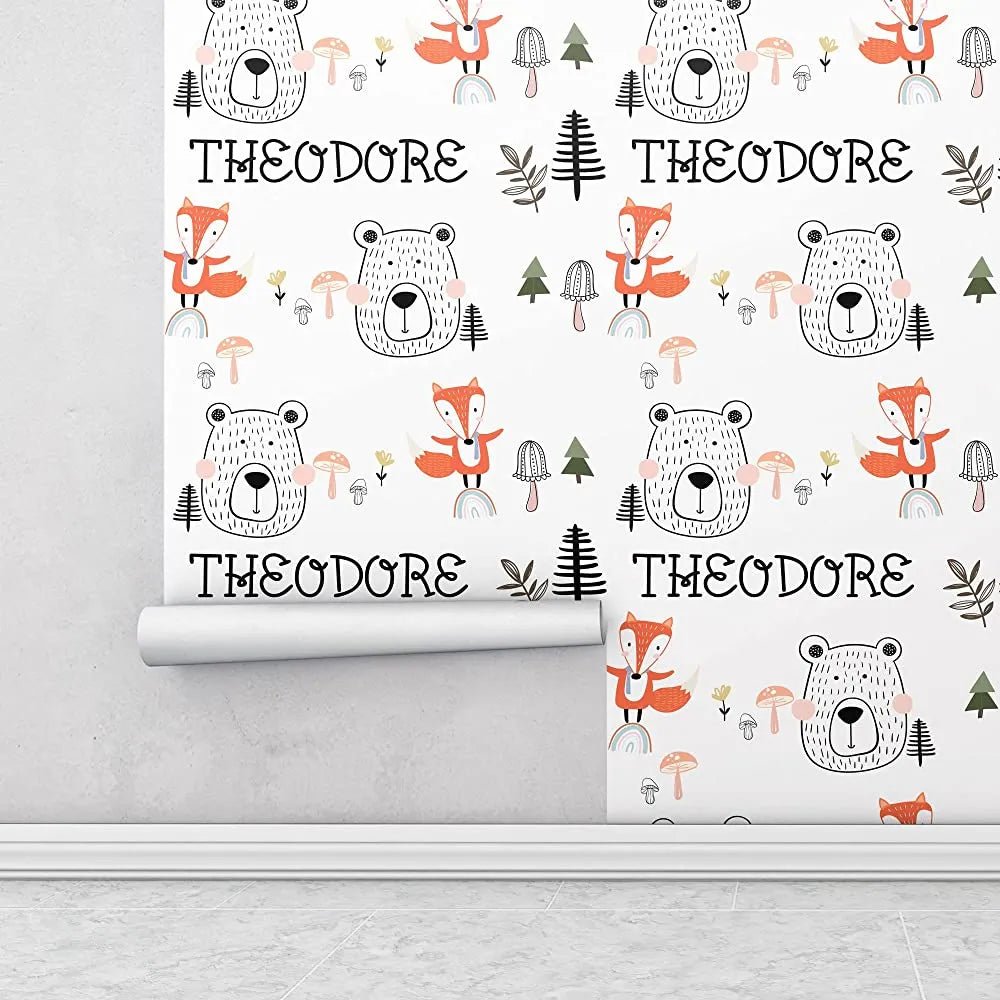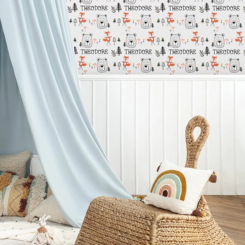 Featuring a personalized Woodland theme and your child's name, our removable microsphere acrylic adhesive wallpaper is perfect for a nursery or bedroom. Simple to apply and remove, this wallpaper is suitable for most smoothly painted interior walls.