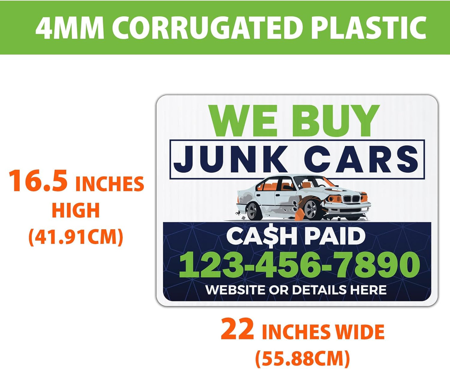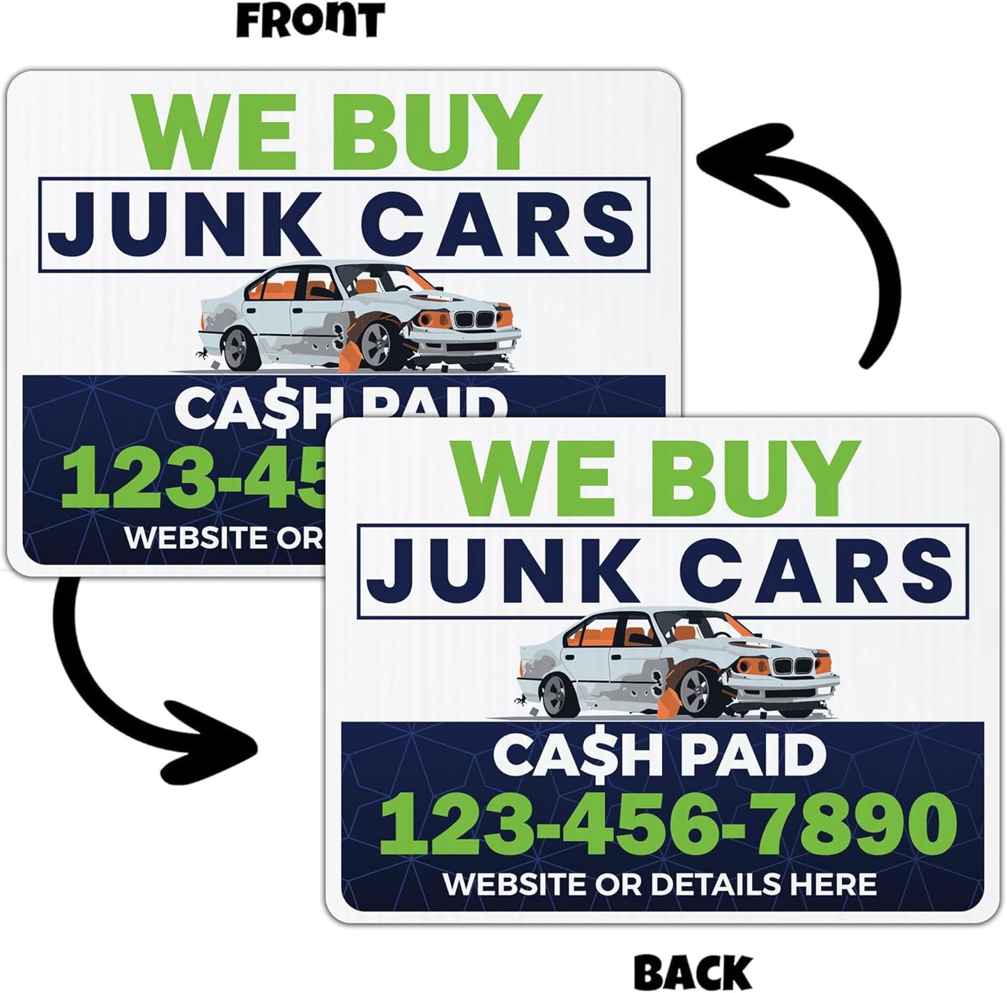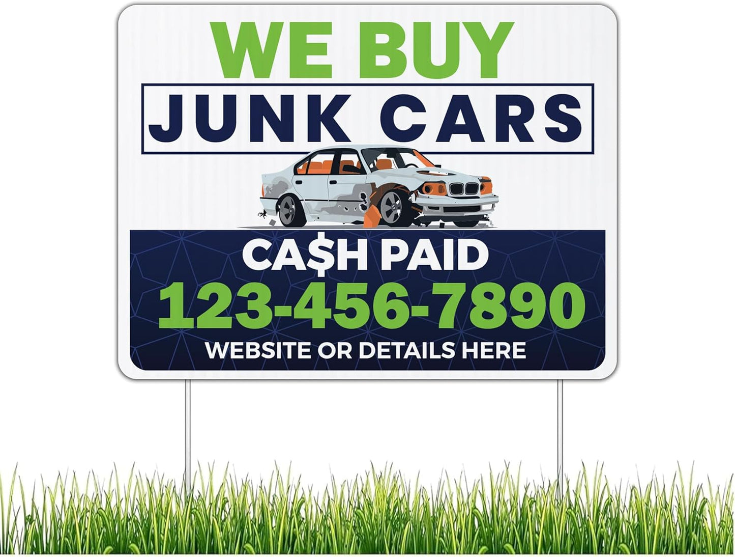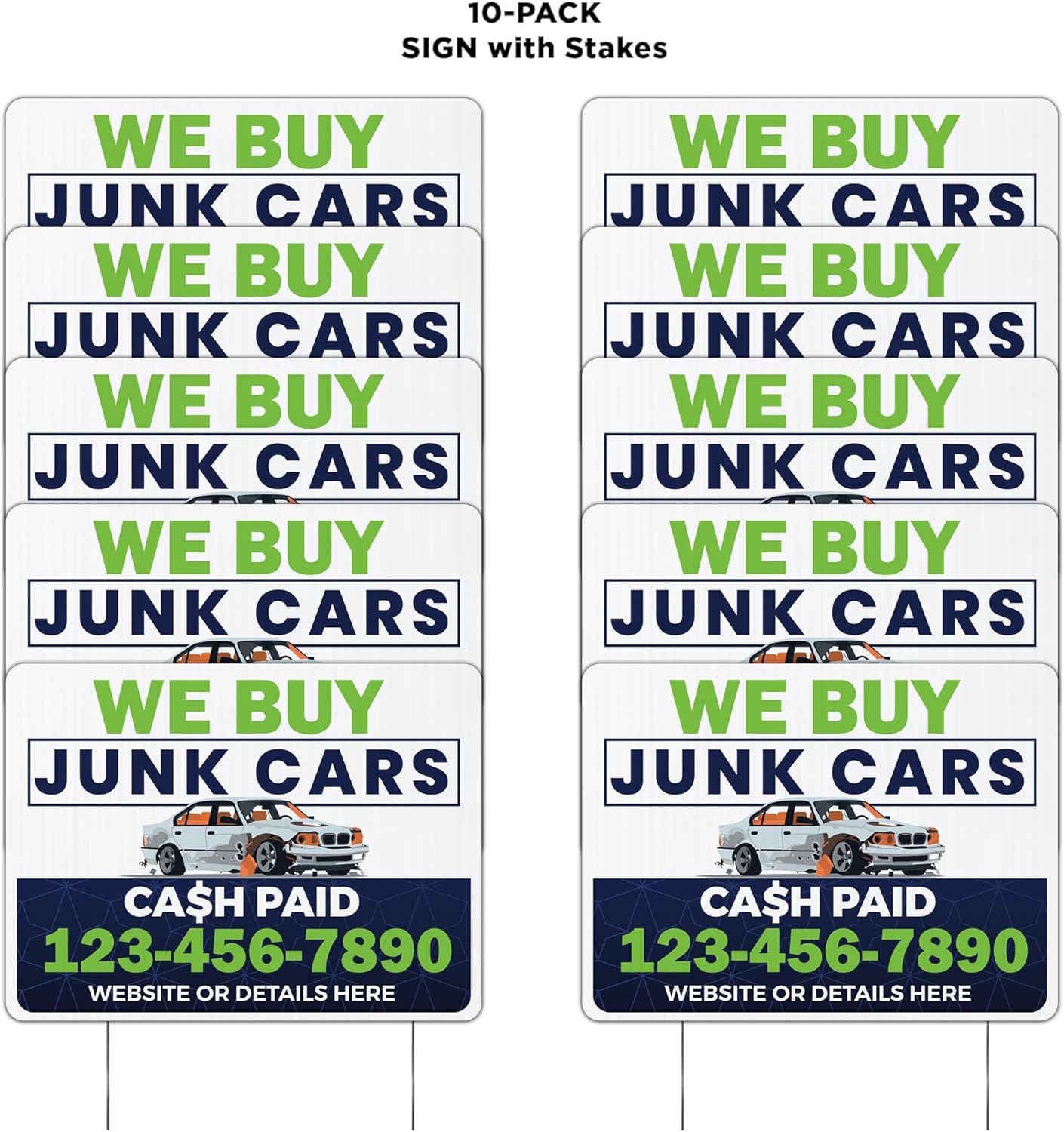 Custom We Buy Junk Cars Yard Signs | 10-Pack | 20 EZ Stakes Included