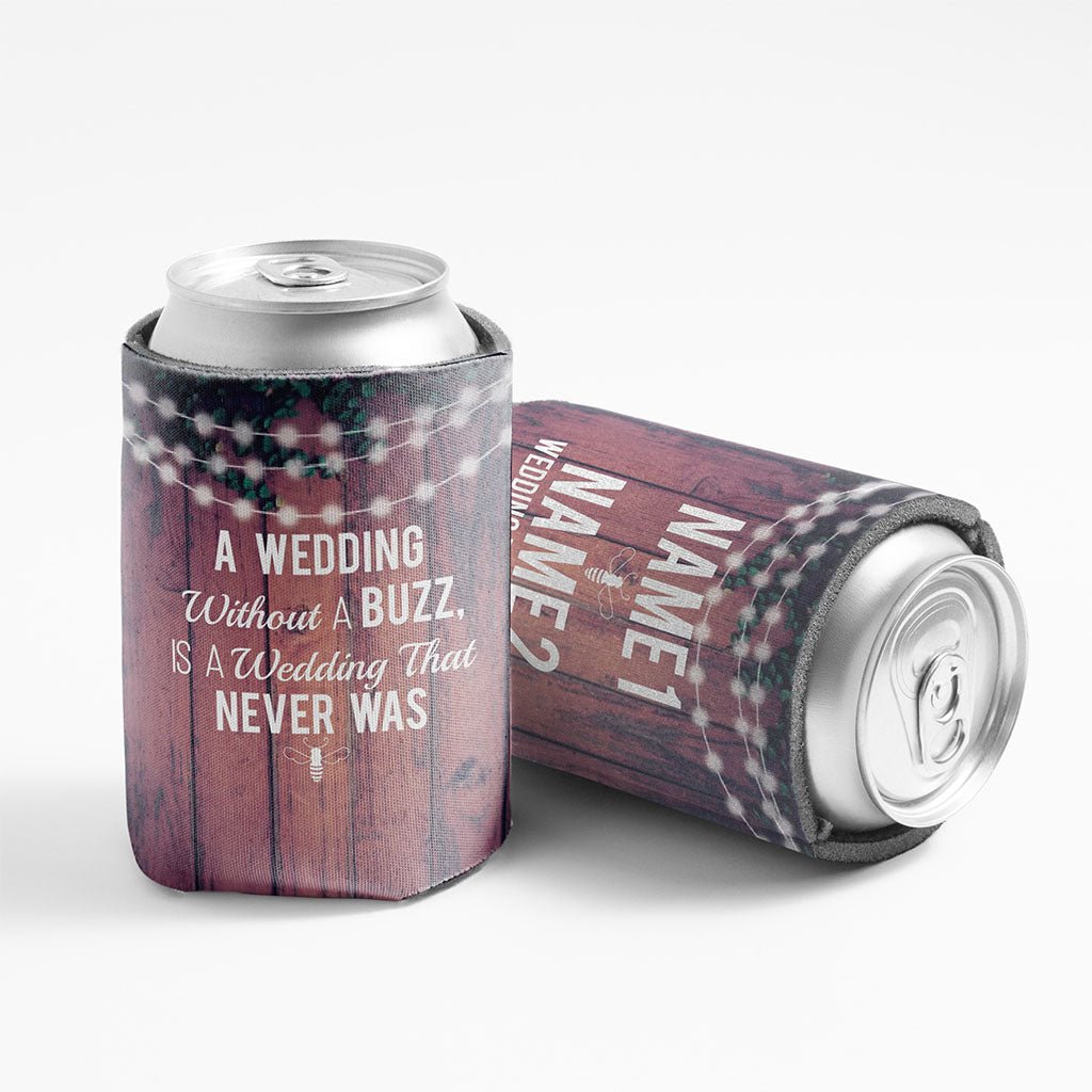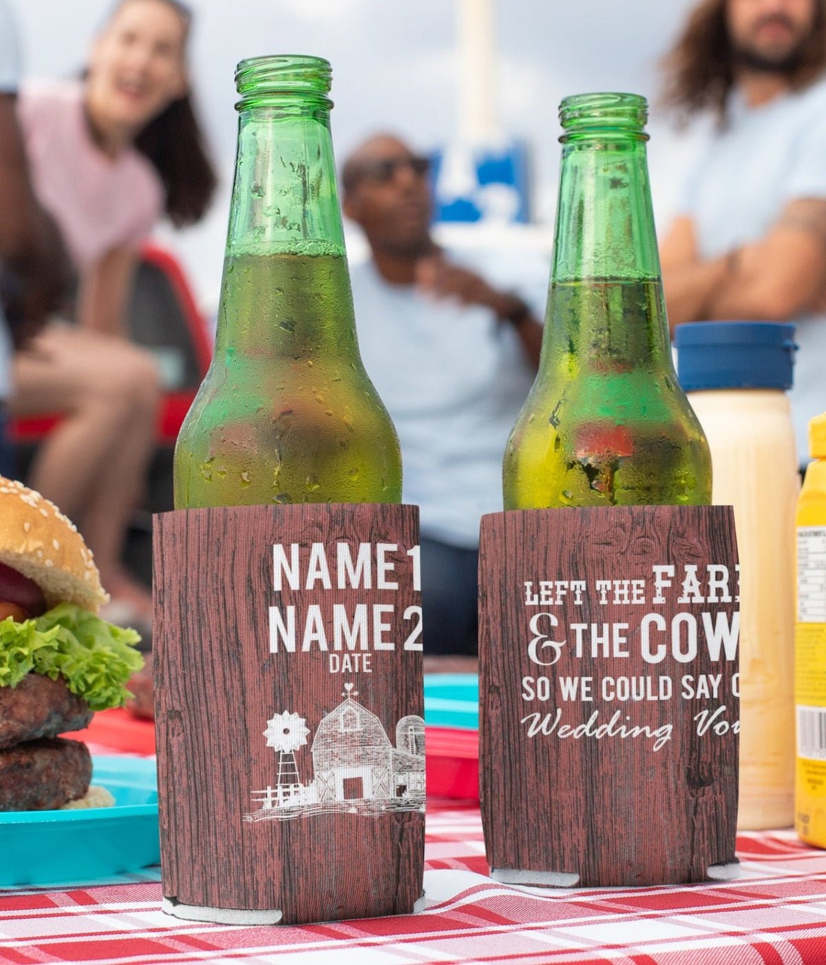 - Country-themed wedding can coolers – Perfect for rustic, farmhouse, barn, or country-style weddings. A fun and memorable favor your guests will love.