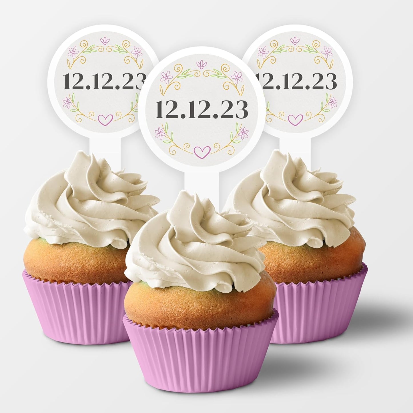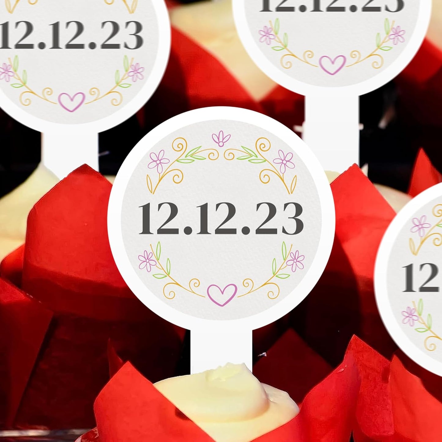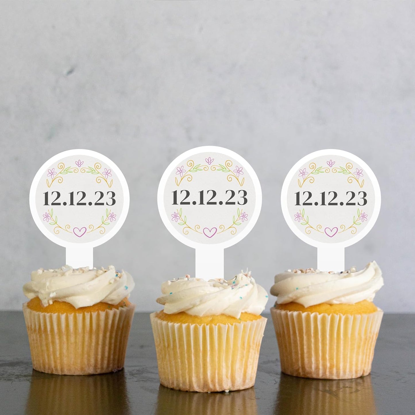 - Personalized Elegance: Embrace the romance with 2x4-inch cupcake toppers, featuring your wedding date amidst a delicate floral design.