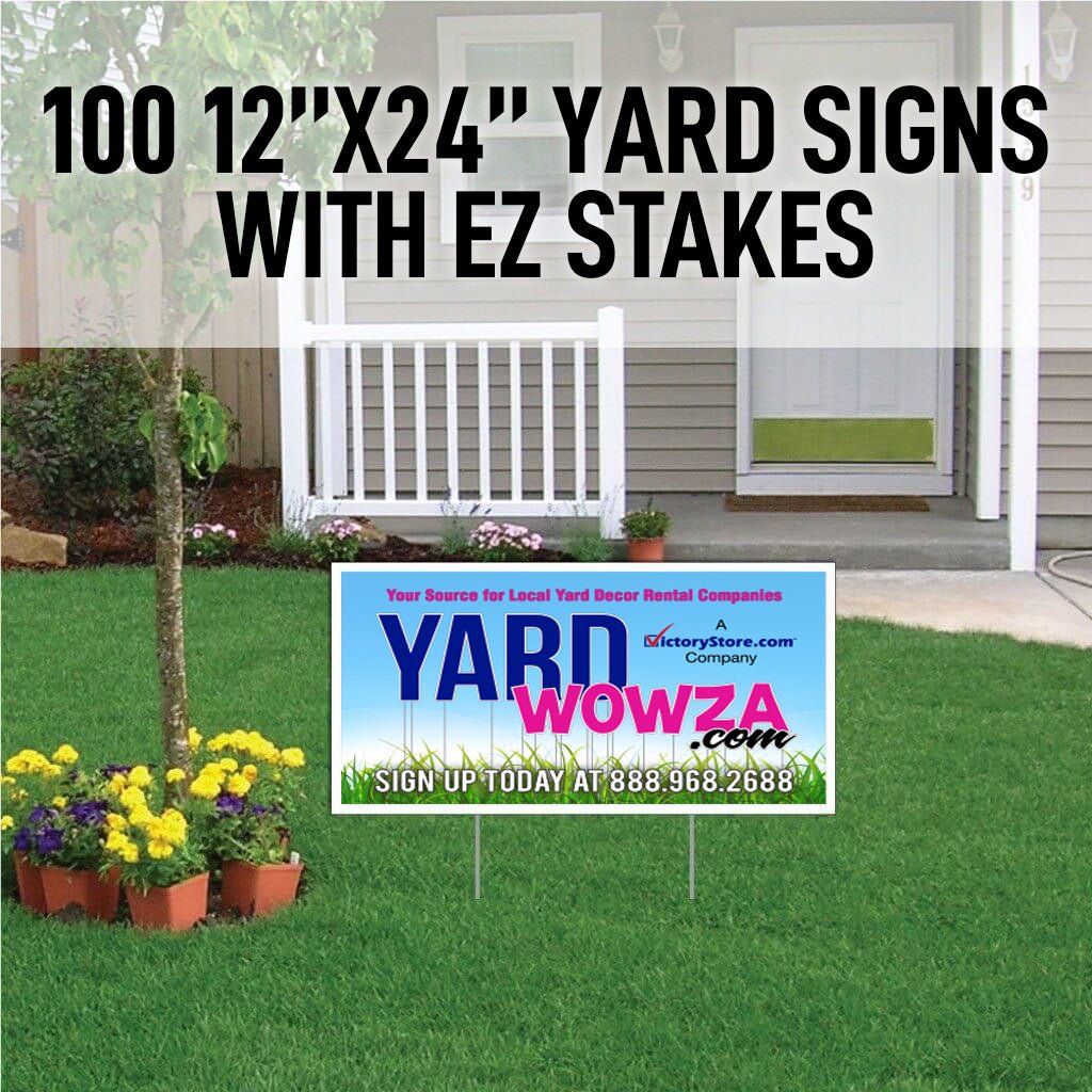 - 100 12" x 24" yard signs with EZ Stakes