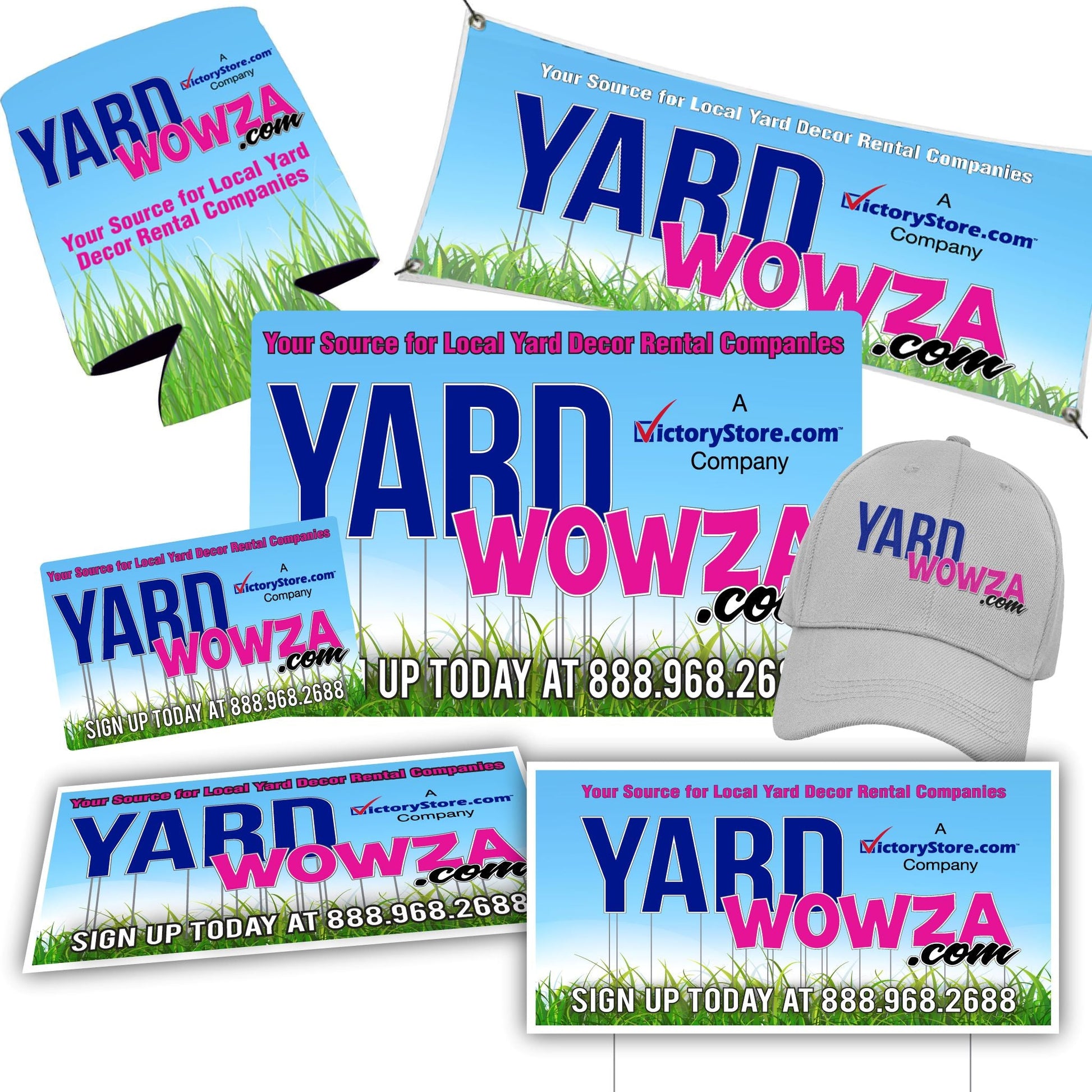 Business Marketing Packages: Packages include your yard signs, ez stakes, car decals, sidewalk decals, can coolers, baseball hats, car toppers and banners! These packages will work for you! Call a sales rep today for help in customizing your package to your specifications.