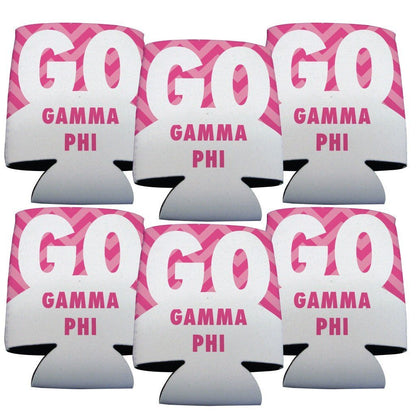 Connect. Impact. Shine. with this Gamma Phi Beta Sorority Can Cooler set with this Go Gamma Phi Beta pink chevron stripes design.