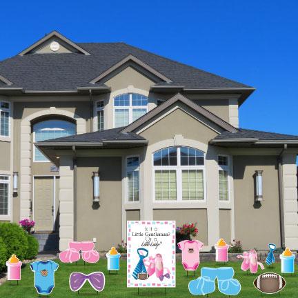 Decorate your yard to celebrate welcoming a little boy or little girl with our Gender Reveal Yard Cards!