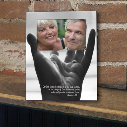 - Our picture frame, measures 8"x 10" overall. Fits a picture with a vertical orientation.