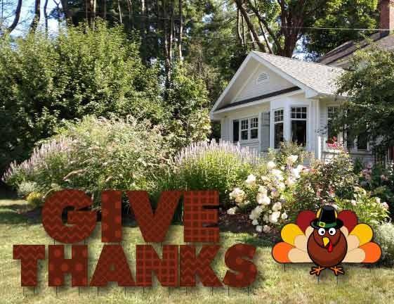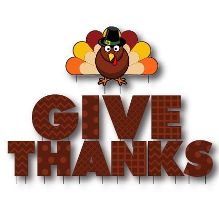 - The letters in 'GIVE' are 20" tall, and the letters in 'THANKS' are 16" tall, with the turkey being 46" wide by roughly 30" tall.