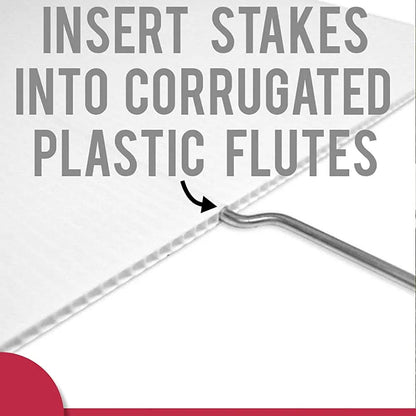 Easy To Install - Simply insert the metal stakes into the flutes of the plastic yard sign. Then take the staked yard sign and push the stakes into the ground to display.