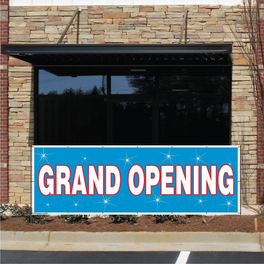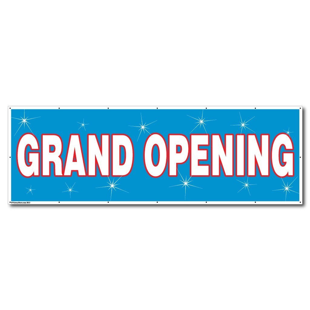 • 'Grand Opening' banner on your choice of 13 oz vinyl banner material or 15 oz heavy duty banner material
