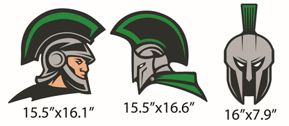 - 2 left facing spartan measuring 15.5x16.6, 3 front facing spartan 16x7.9 and 2 right facing spartans 15.5x16.1